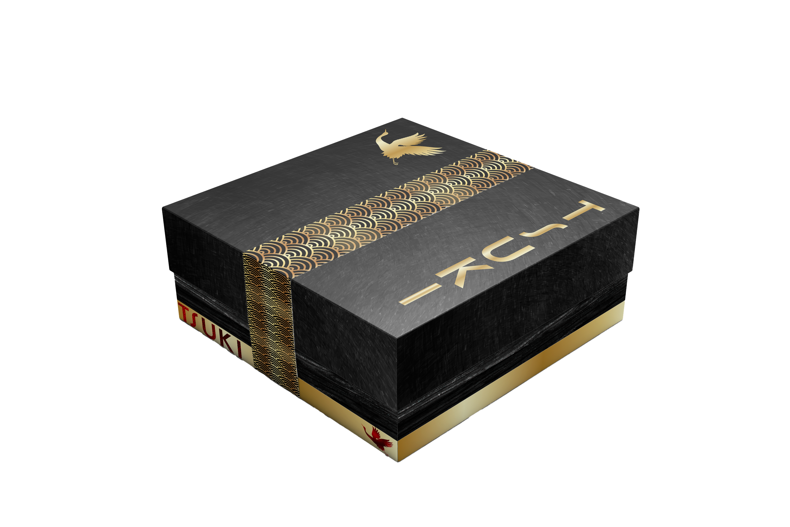 The soft gradient toe contrasts with the bold black background, while warm red laces and floral accents add a sense of handcrafted detail. The branding integrates seamlessly with the overall visual, reinforcing Tsuki’s identity as a fusion of tradition and modern fashion.